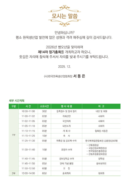 [2026년 한국원목생산업협회 제14차 정기총회 개최 알림]